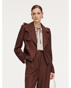 Tencel Acetate Linen Blend Trench Jacket With Belt - Brown
