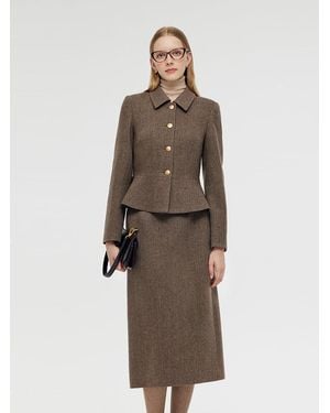 Washable Wool Crop Jacket And Half Skirt Two-Piece Set - Multicolor