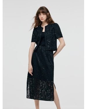 Lace Sequins Crop Jacket And Slit Skirt Two-Piece Set - Blue