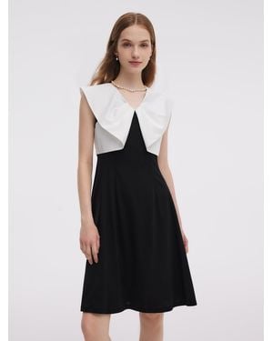 Lyocell Contrast Trim Patchwork Vest Midi Dress - Black