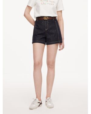 Denim Stretch Adjustable High-Waisted Shorts - Blue