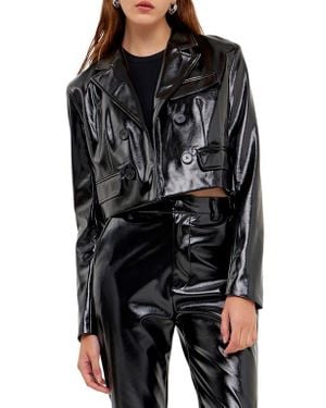 Shiny Faux Leather Crop Jacket - Black