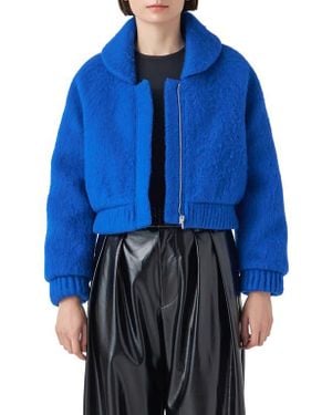Felted Wool Blend Bomber Jacket - Blue