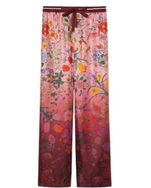 Blooms Print Pajama Burgundy Silk Pants - Red