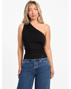 Jaide Asymmetric Short-sleeve Shirring Top - Black