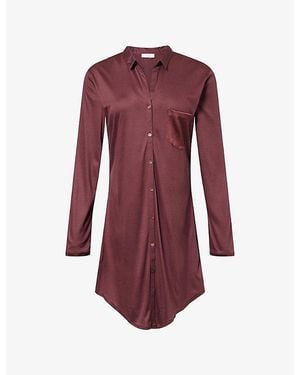 Grand Central Long-Sleeve Stretch-Silk Blend Night Dress - Red