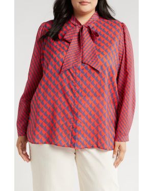 Aveline Tie Neck Button-Up Shirt - Red