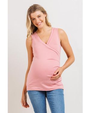 Maternity Sleeveless Ruched V-neck Wrap Nursing Tank Top - Pink