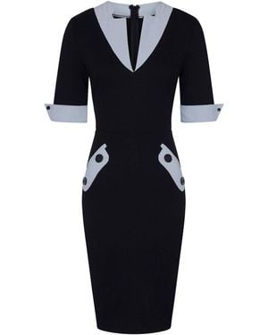 Contrast Collar Short-Sleeved Dress - Blue
