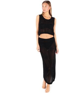 Scoop Neck Embroidered Crochet Jacquard Swim Tank Top - Black