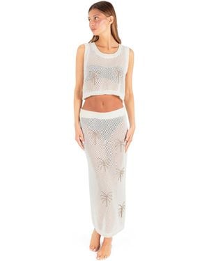Scoop Neck Embroidered Crochet Jacquard Swim Tank Top - White