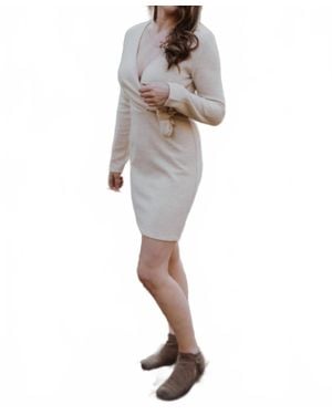 Tie Long Sleeve Ribbed Mini Dress - Natural