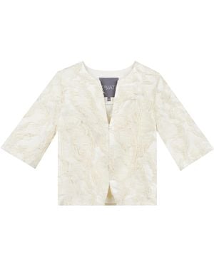 Frayed Jacquard Cropped Jacket - White