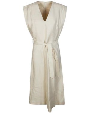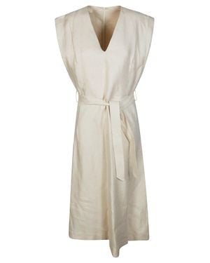 Lia Midi Dress With V-Neck And Belt - Natural