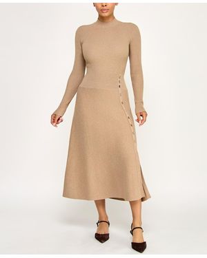 Long Sleeve Fit & Flare Sweater Dress - Natural