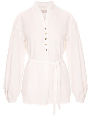 Bishop Sleeves Cotton And Linen Shirt With Cord - White