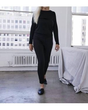 Pants 100% Cotton Textured Pull On High Rise Cropped Gbo2063 - Black