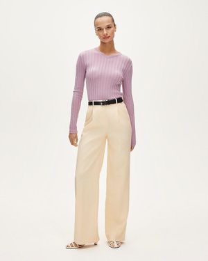 Spring Street Ribbed Featherweight Cashmere Flare Pant - Natural