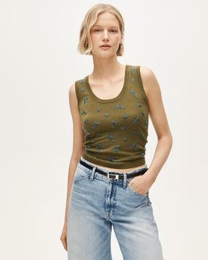 Embellished Tweed Tank Top - Green