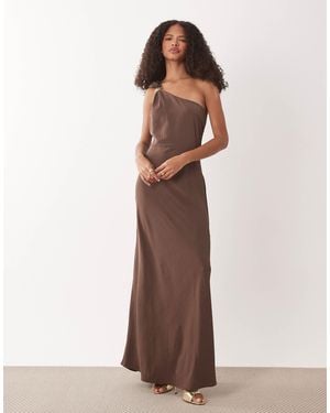 One Shoulder Maxi Dress With Gold Trim - Brown