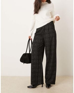 Textured High Waist Wide Leg Pants - Black