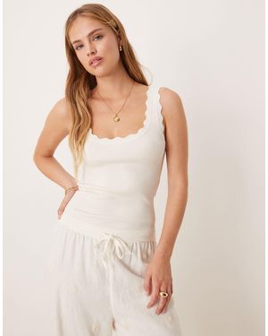 Scallop Edge Knit Tank Top - Natural
