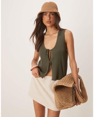 Tie Front Reversible Knitted Vest - Green