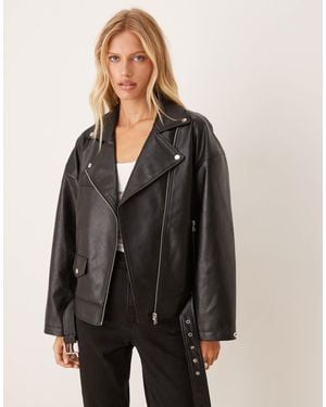 Faux Leather Biker Jacket - Black
