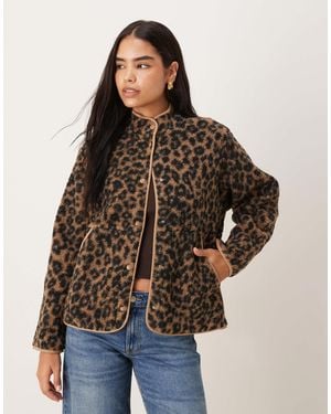 Teddy Leopard Print Jacket - Brown