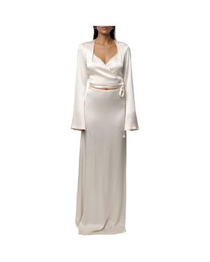 Golden Eve Satin Long Sleeve Top & Maxi Skirt Set - Gray