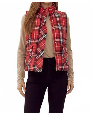 Tartan Plaid Puffer Vest - Red