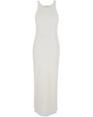Long Dress Ribbed Sleeveless With Round Neckline And Pleated Details - Natural