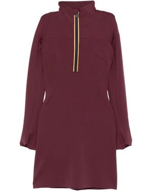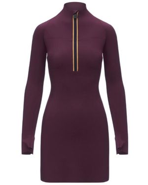 Short Scuba Mini Dress With High Collar And Zip Closure - Purple