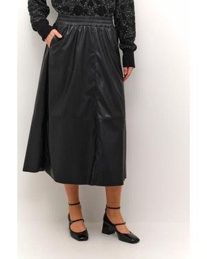 Kamikka Faux Leather A-Line Midi Skirt - Black