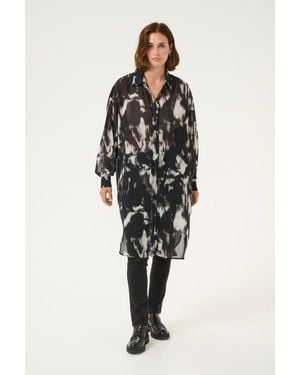 Kaaska Sheer Long Sleeves Shirt Dress - Black
