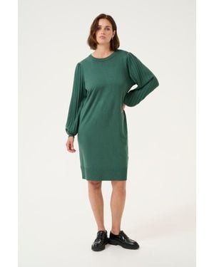 Kalone Knit Round Neck Knee Length Dress - Green