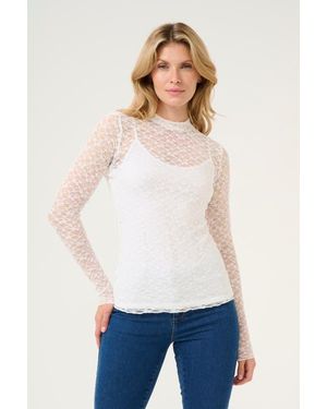 Kajolia Long Sleeve Sheer Lace T-Shirt - White