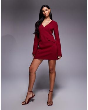 Exclusive Tailored V Neck Long Sleeve Mini Dress