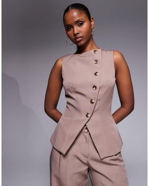 Exclusive Tailored Asymmetric Button Detail Vest - Brown
