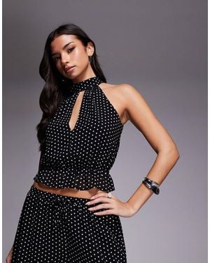 Exclusive Halterneck Keyhole Plunge Detail Chiffon Top Co-ord - Gray