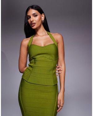 Exclusive Premium Sculpting Sweetheart Halterneck Bandage Top - Green