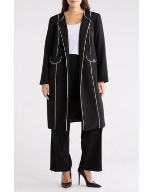 Stretch Crepe Piping-trim Long Jacket - Red