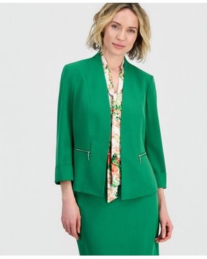 Zip-pocket 3/4-sleeve Blazer - Green