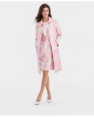 Floral Jacquard Three Button Topper Empire Seam Dress - Pink