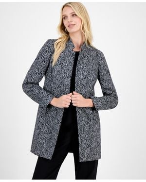 Jacquard Mandarin-collar Open-front Topper - Gray