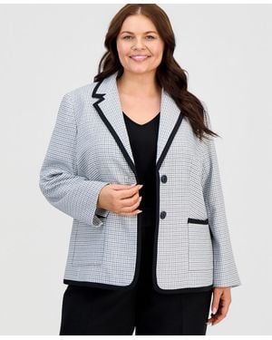 Plus Size Framed Notched Collar Patterned Jacket - Gray