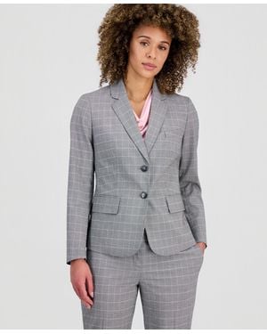 Petite Tailored Plaid Blazer - Gray