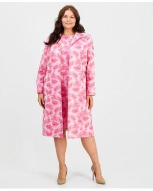 Plus Size Jacquard Topper Jacket Sheath Dress - Pink