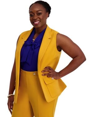 Notched Collar Open-front Regular & Plus Sizes Vest Jacket - Orange