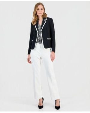 Stretch Crepe Two Button Jacket Printed Knot Neck Sleeveless Top Button Tab Wide Leg Pants - White